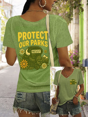 Women's Protect Our National Parks Print V Neck Casual T-Shirt
