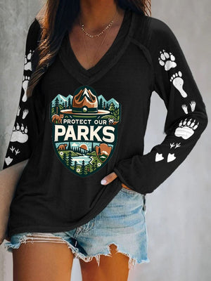 Women's Protect Our National Parks Print V Neck T-Shirt