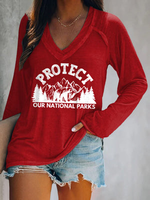 Women's Protect Our National Parks Print V Neck T-Shirt