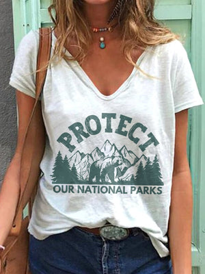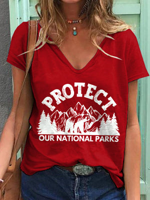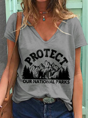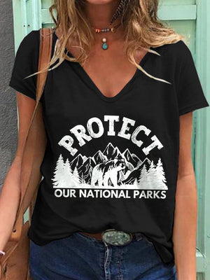 Women's Protect Our National Parks Print V Neck T-Shirt