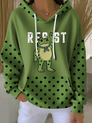 Women's Resist Frog Print Casual Hoodie Sweatshirt