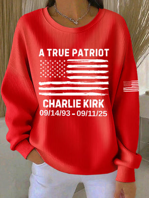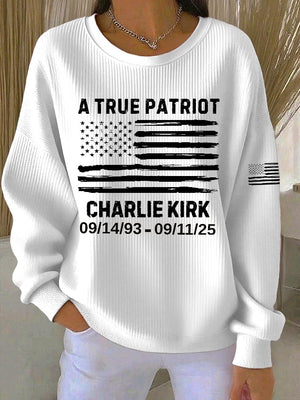 Women's Retro A True Patriot Print Round Neck Sweatshirt