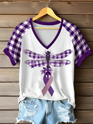Women's Retro Cancer Awareness Printed Raglan V-Neck T-Shirt