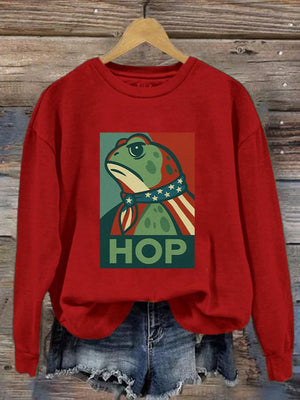 Women's Retro Hop Resist Frog Printed Round Neck Sweatshirt