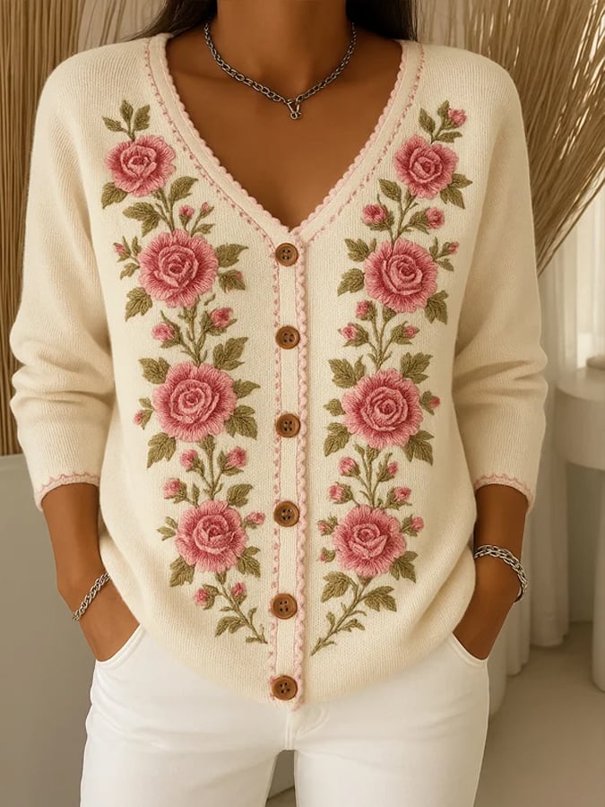 Women's Retro Pink Art Print Cardigan