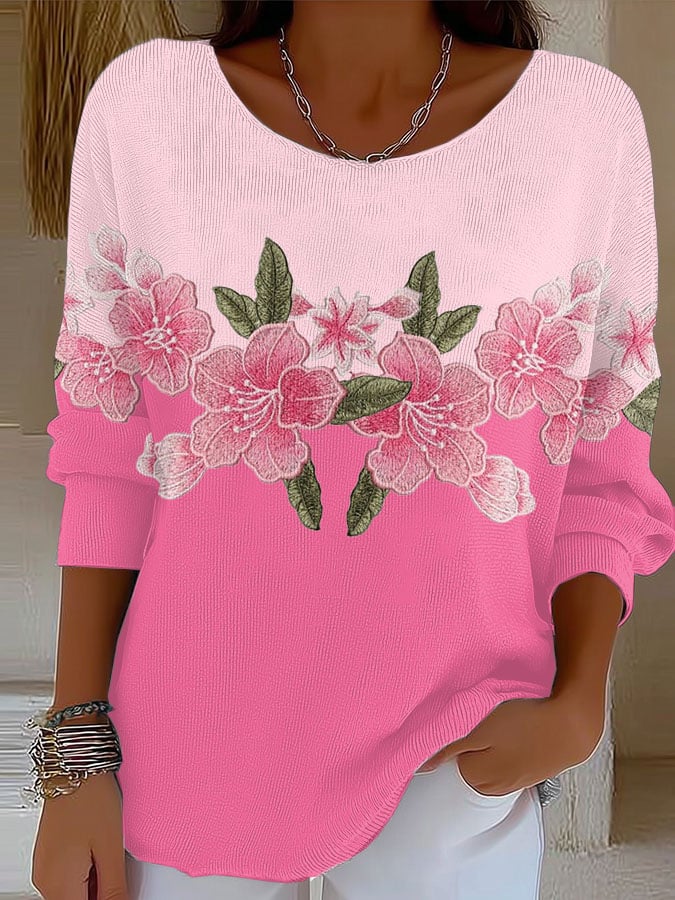 Women's Retro Pink Floral Gradient Art Print Sweater
