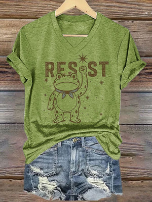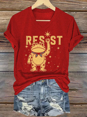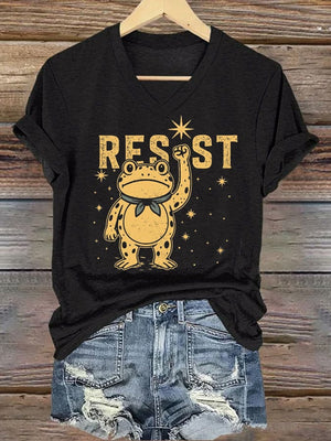 Women's Retro Resist Frog Print T-Shirt