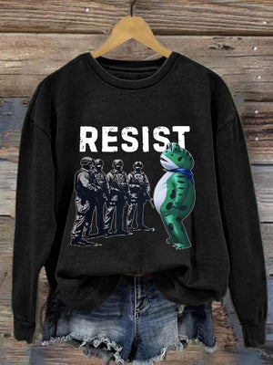 Women's Retro Resist Frog Printed Round Neck Sweatshirt