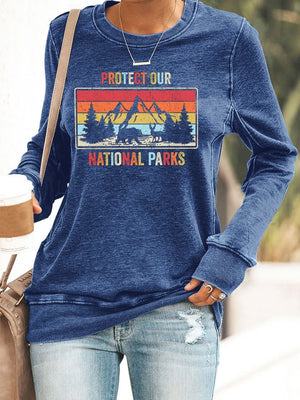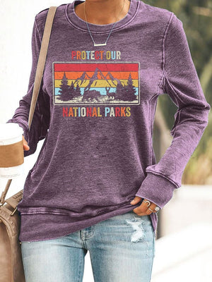 Women's Retro Retro Protect Our National Parks Printed Casual Sweatshirt