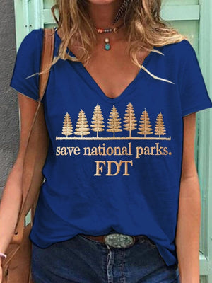 Women's Retro Save National Parks FDT Print V-Neck T-Shirt