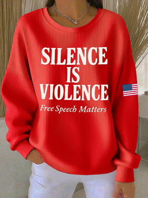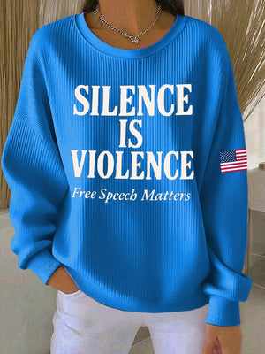 Women's Retro Silence Is Violence Free Speech Matters Print Round Neck Sweatshirt