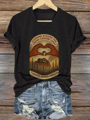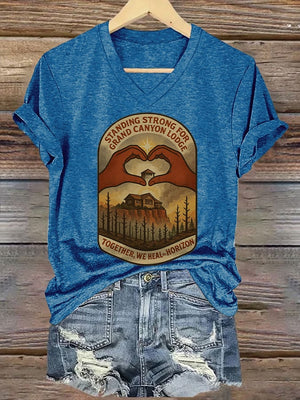 Women's Standing Strong For Grand Canyon Lodge Print V Neck T-shirt
