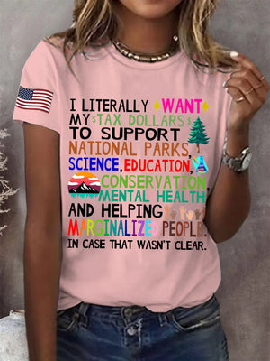 Women's Support National Parks Print Round Neck T-Shirt