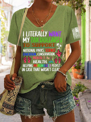 Women's Support National Parks Print V Neck Casual T-Shirt
