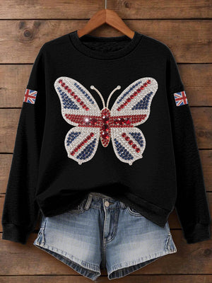 Home Women's UK Flag Butterfly Print Sweatshirt