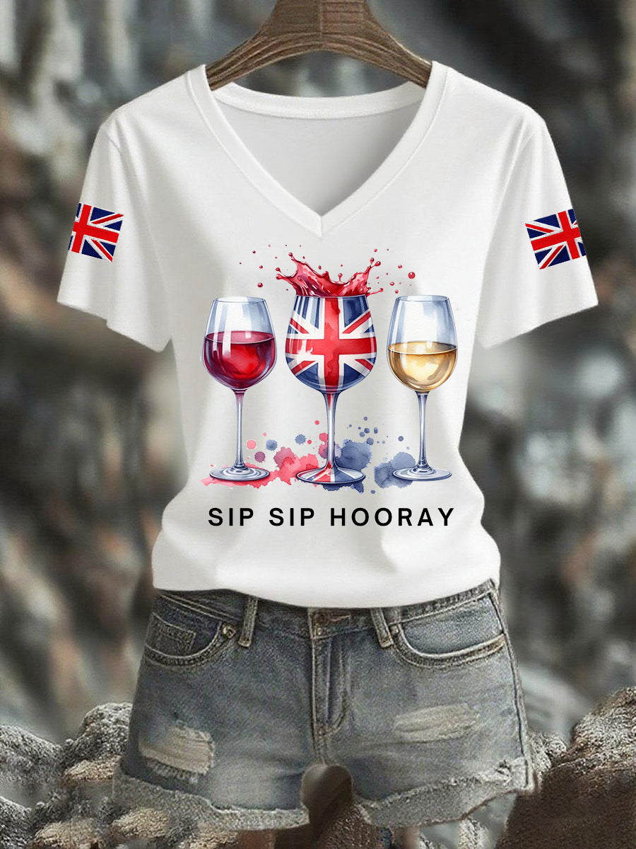 Women's Union Jack Red Wine Glass Short Sleeve T-Shirt