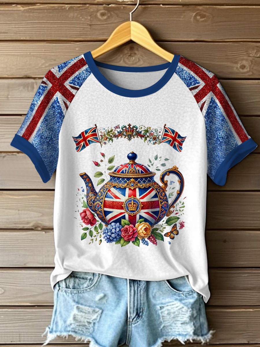 Women's Union Jack Time Of Tea Round Neck Short Sleeve T-shirt