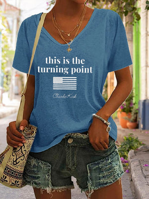 Women's V-Neck Retro This is the Turning Point Print T-Shirt