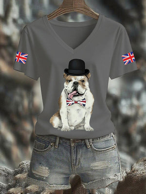 Women's Vintage England Flag Casual Printed V-neck T-Shirt