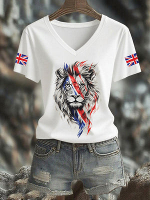 Women's Vintage England Flag Casual Printed V-neck T-Shirt