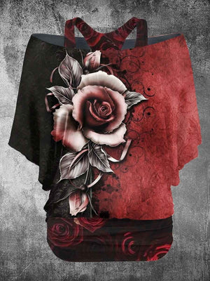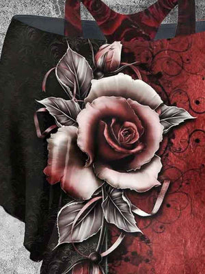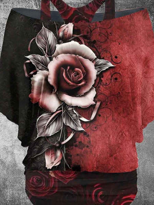 Women's Vintage Gothic Rose Art Printed Two Piece Top