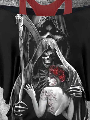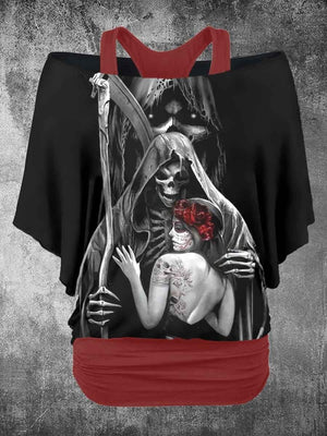 Women's Vintage Grim Reaper Skull Printed Two Piece Top