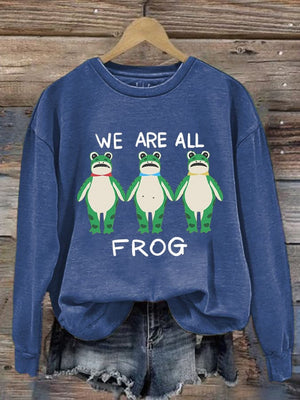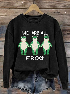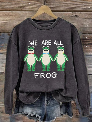 Women's We Are All Frog Printed Round Neck Sweatshirt