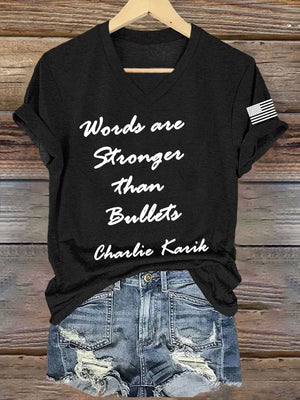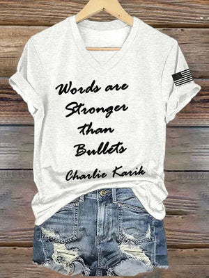 Women's Words Are Stronger Than Bullets Print V Neck T-shirt